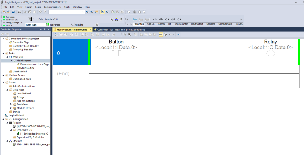 Quando o programa estiver em execução com sucesso, a saída será energizada com sucesso quando a entrada também estiver energizada.
